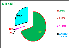 These are grown over an area of 1360 ha, in both Kharif and Rabi season.
